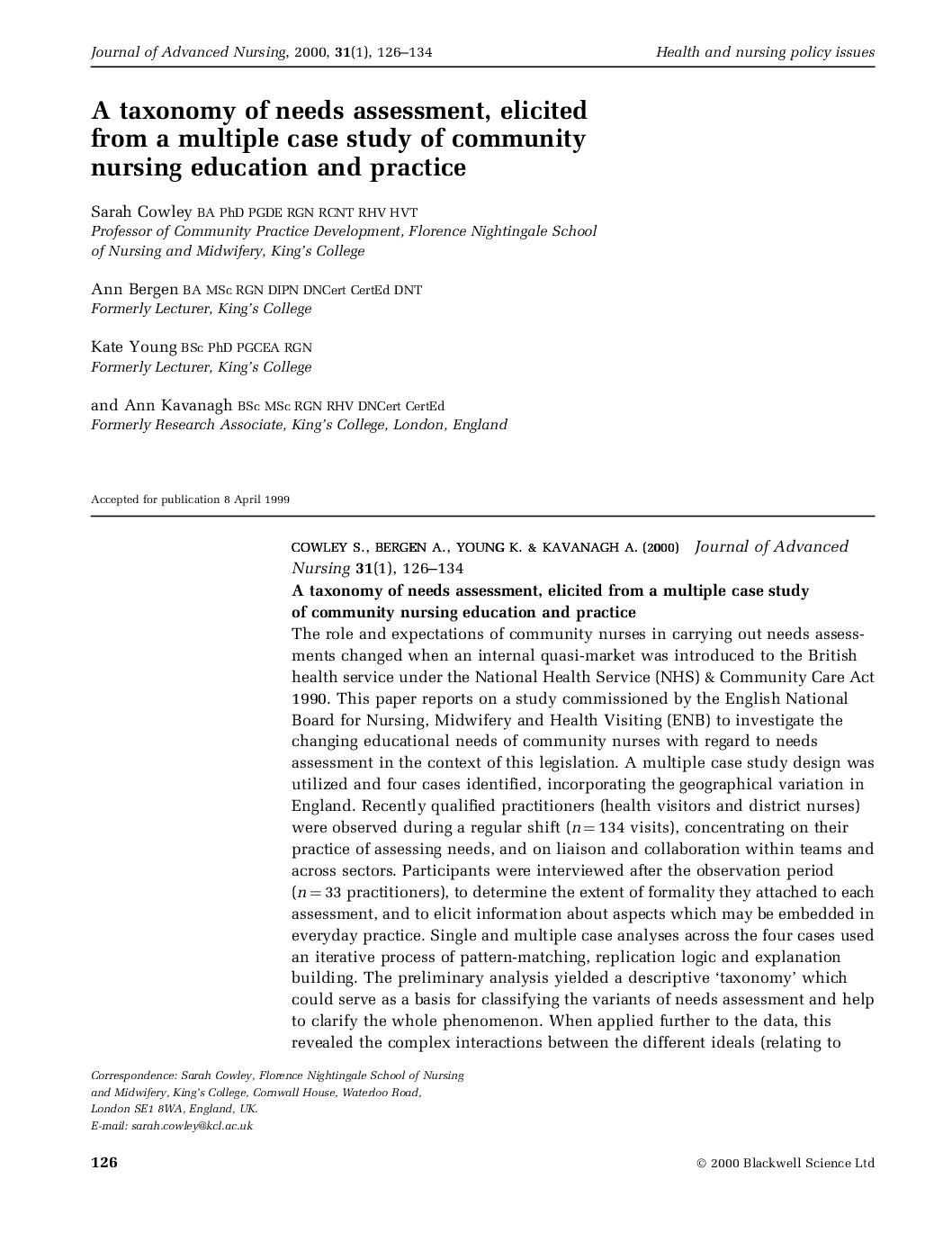A taxonomy of needs assessment, elicited from a multiple case study of community nursing education and practice