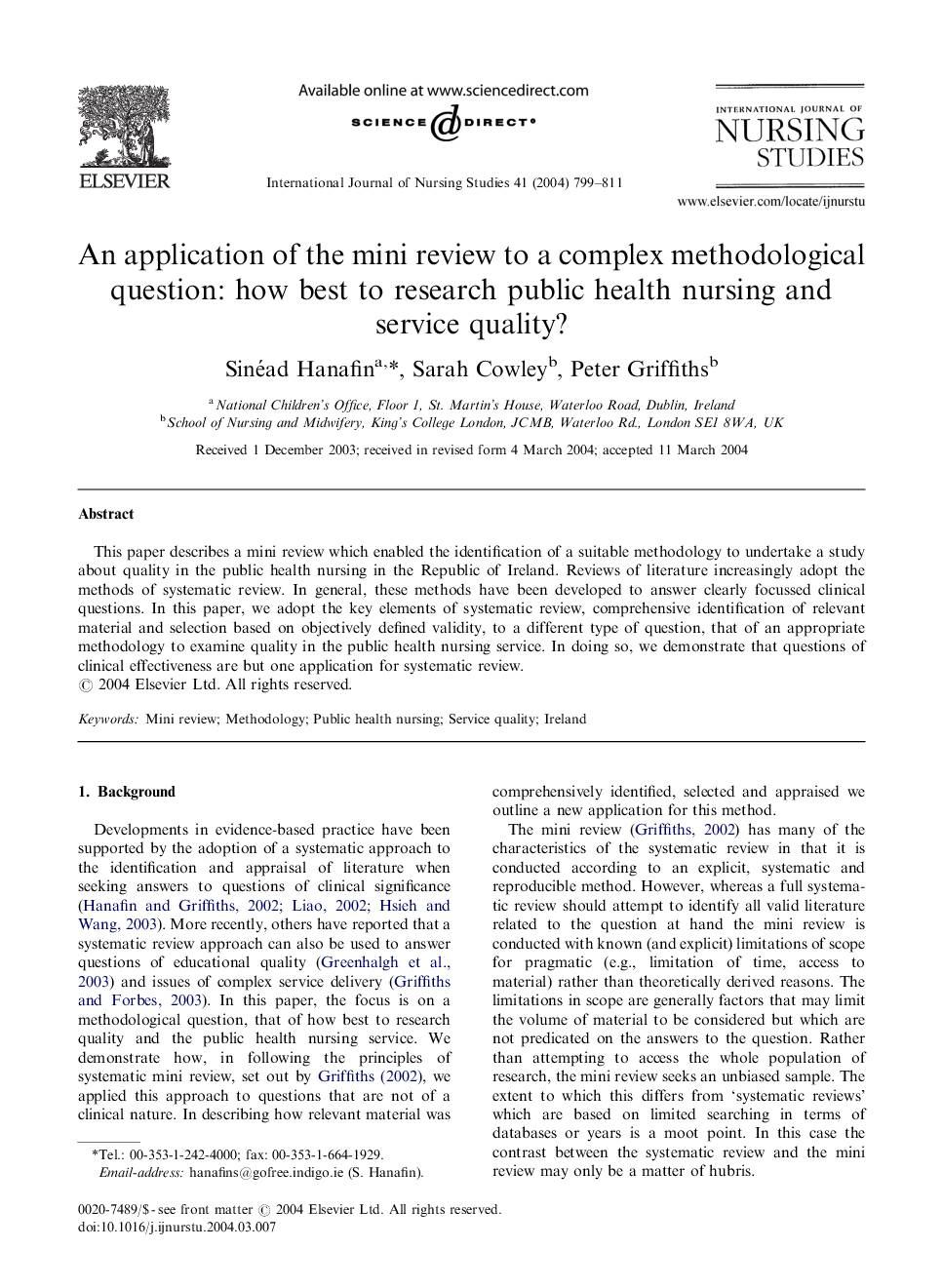 An application of the mini review to a complex methodological question: how best to research public health nursing and service quality?