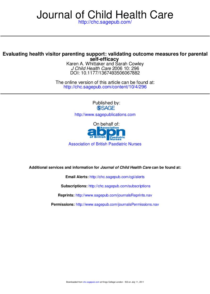 Evaluating health visitor parenting support: validating outcome measures for parental self-efficacy