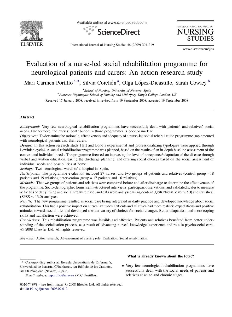 Evaluation of a nurse-led social rehabilitation programme for neurological patients and carers: An action research study