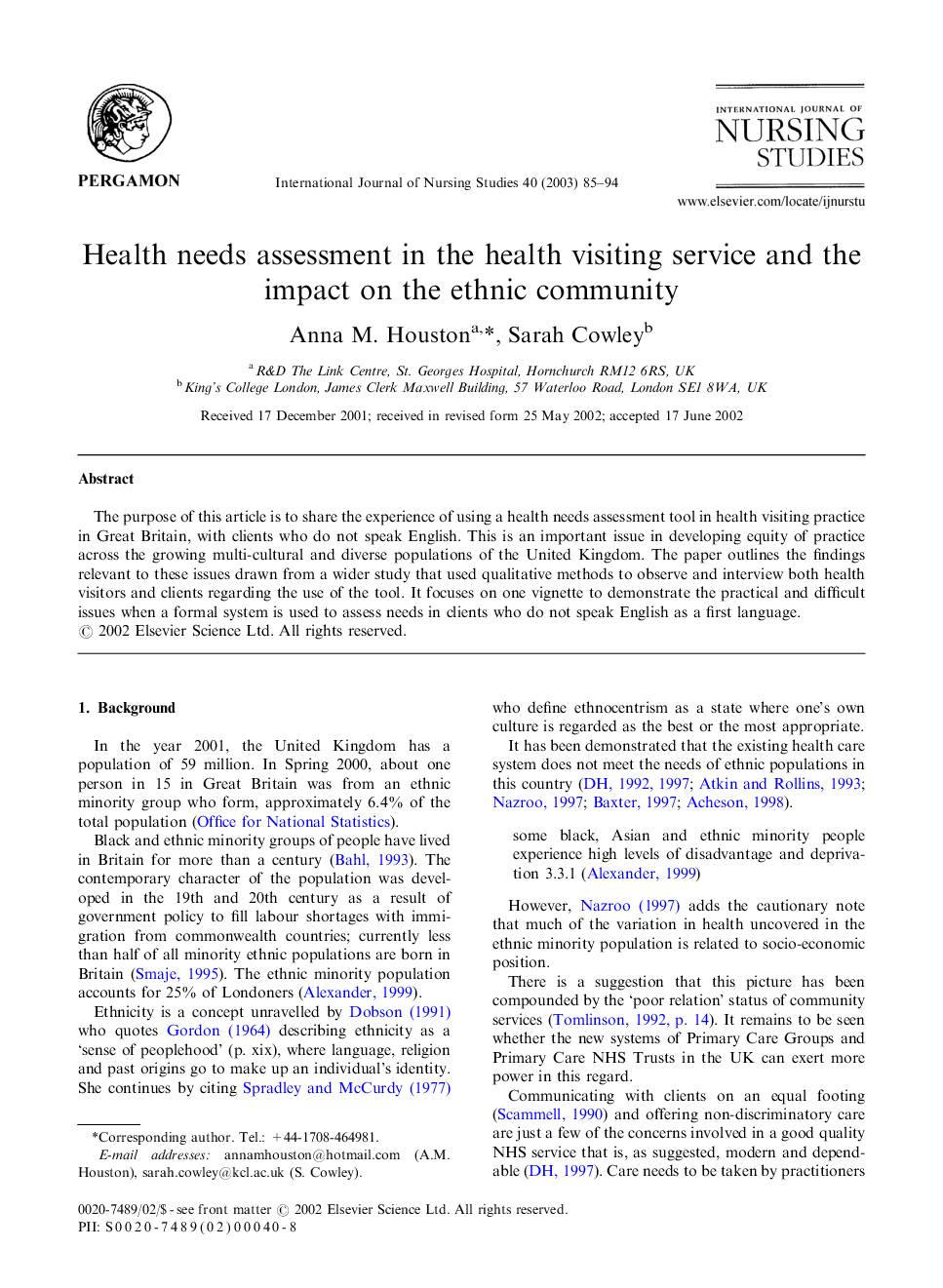 Health needs assessment in the health visiting service and the impact on the ethnic community