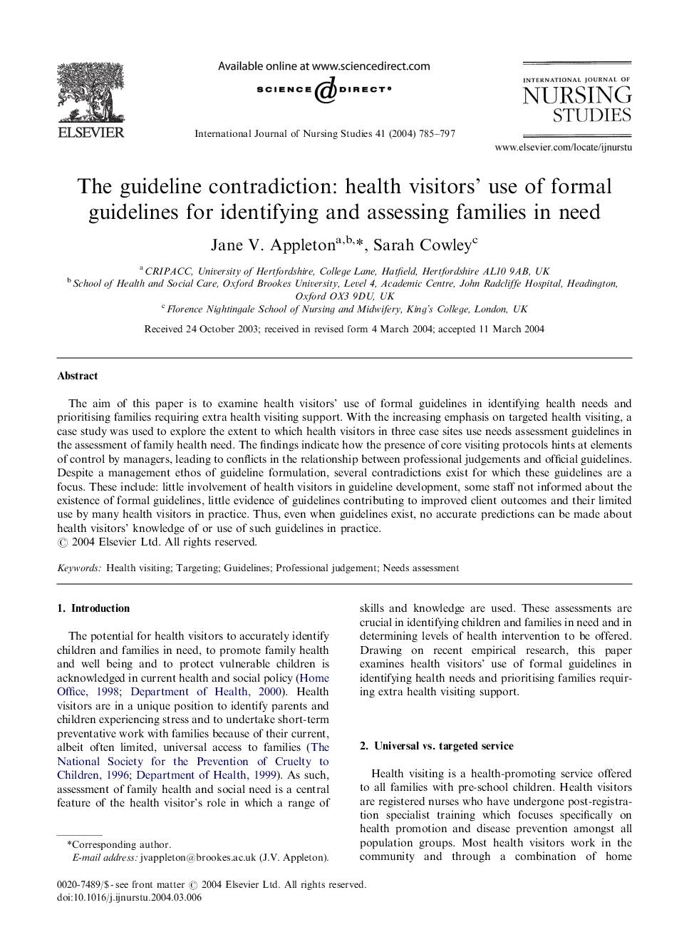 The guideline contradiction: health visitors’ use of formal guidelines for identifying and assessing families in need