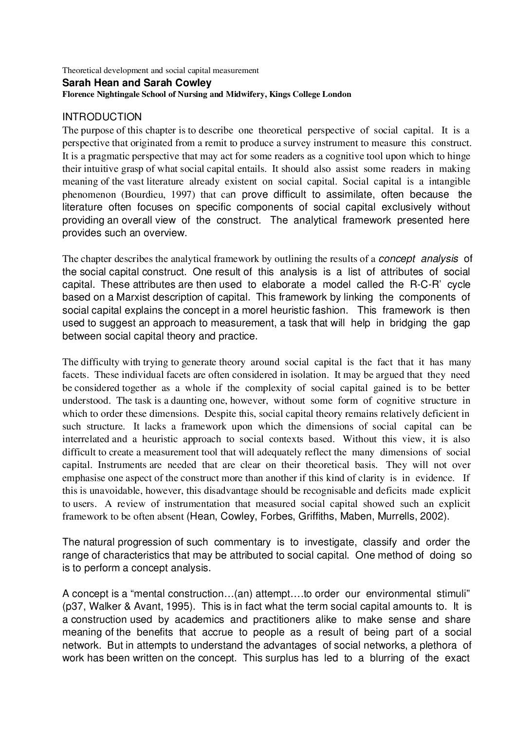 S Hean, S Cowley, A Forbes, P Griffiths: Theoretical development and social capital measurement.